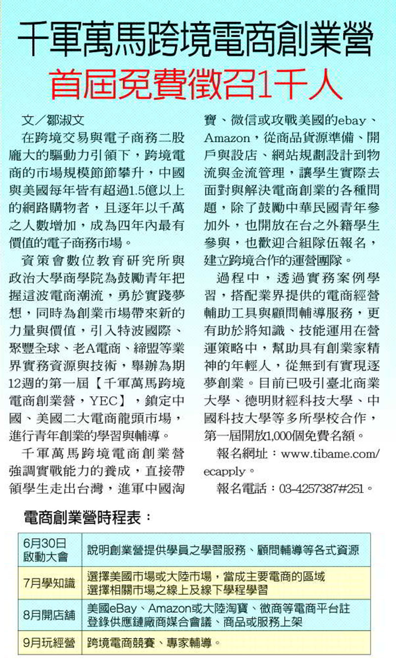 千軍萬馬跨境電商創業營 首屆免費徵召一千人